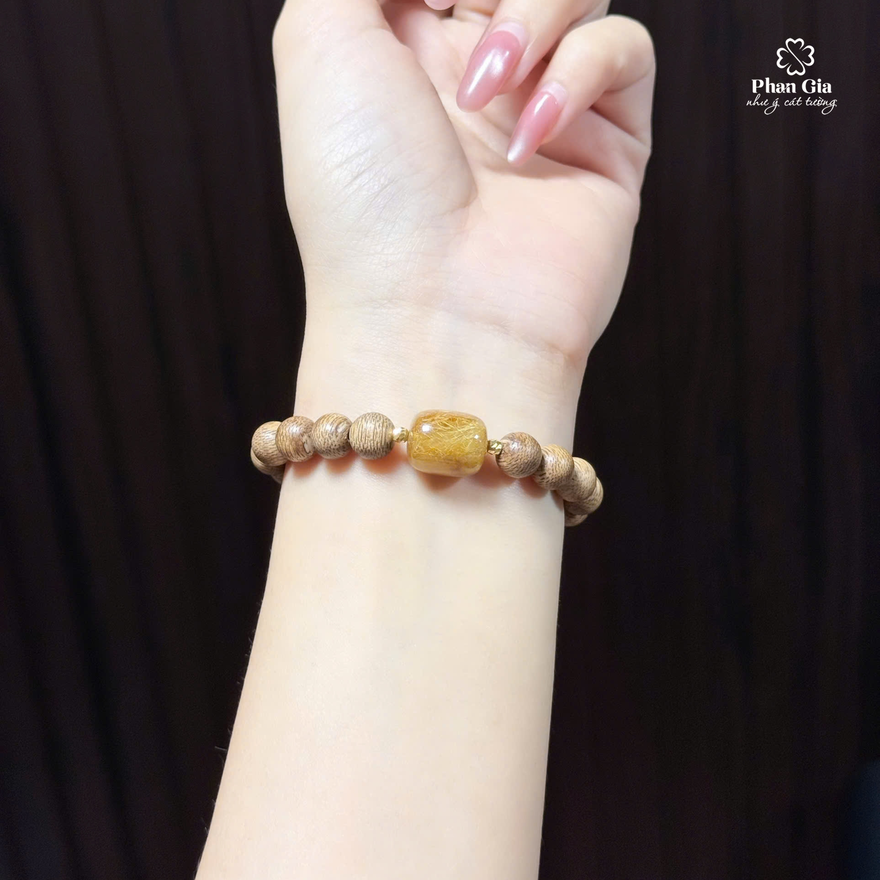 Vòng tay trầm kiến mix lu thống thạch anh tóc vàng là lựa chọn lý tưởng: