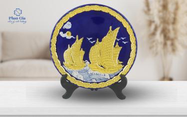 Đĩa gốm thuận buồm xuôi gió dát vàng – Biểu tượng phong thủy may mắn tại Nghệ An