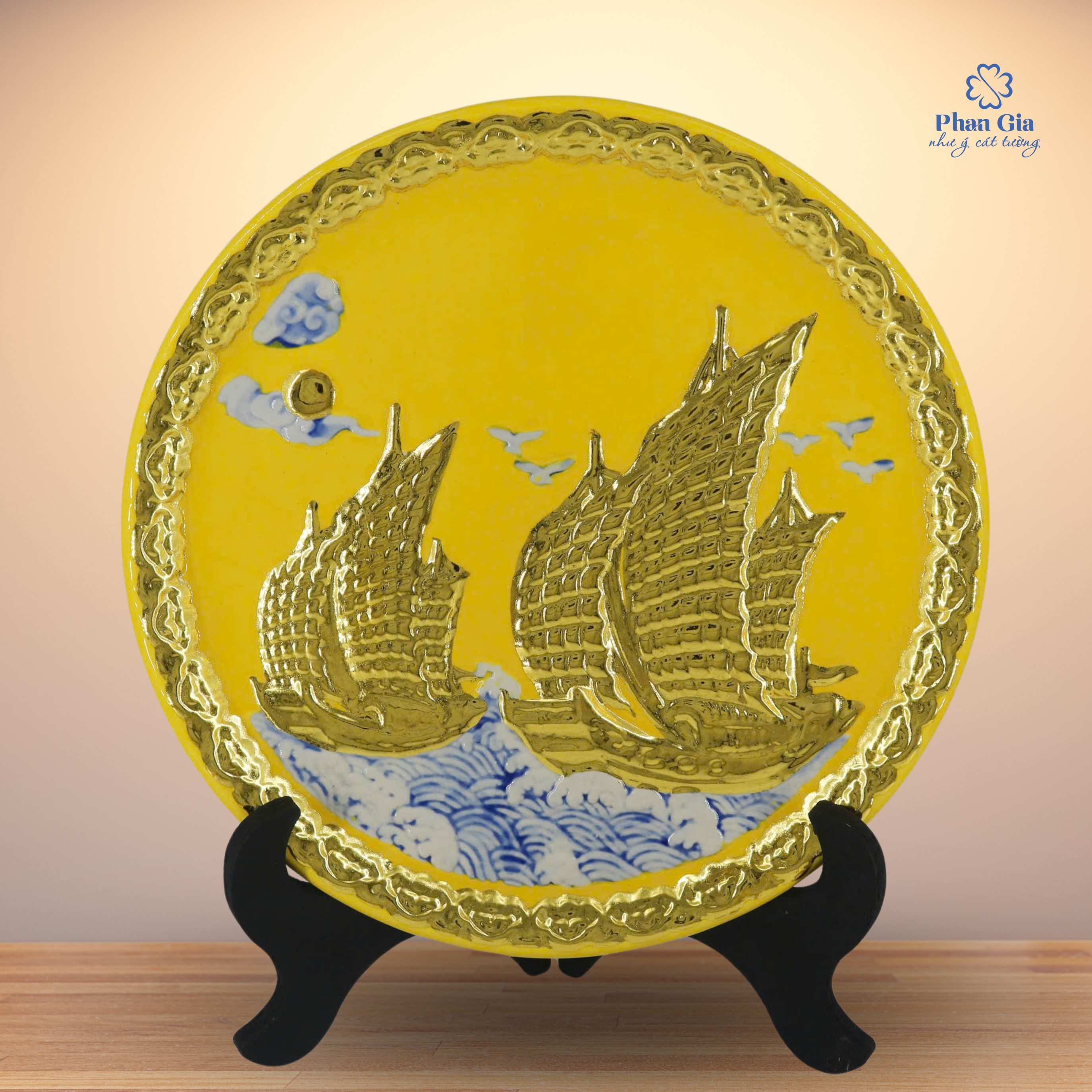 Liên hệ ngay Phan Gia để sở hữu đĩa gốm Thuận Buồm Xuôi Gió đắp nổi dát vàng – vật phẩm mang lại may mắn, tài lộc và thành công cho bạn và người thân.
