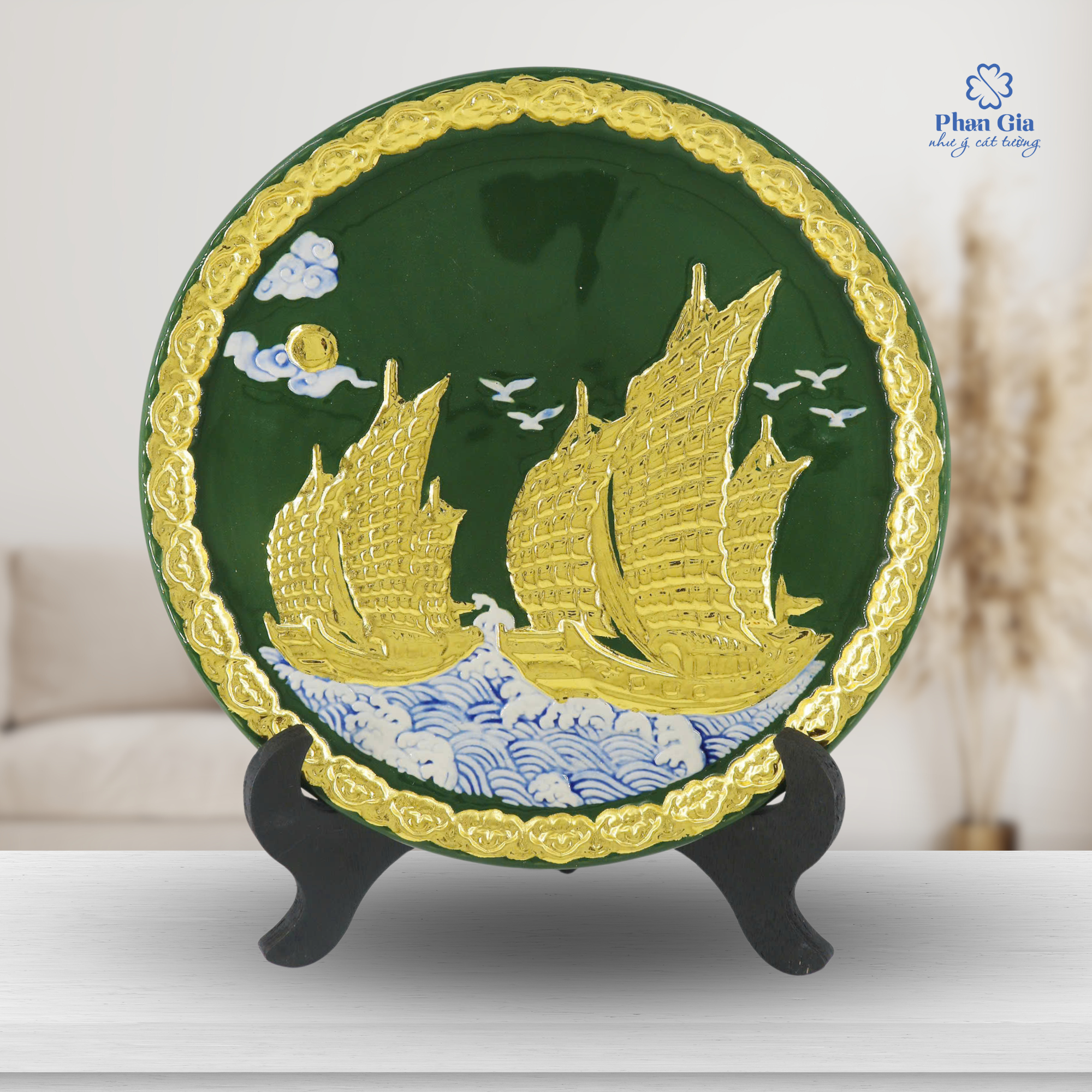 Liên hệ ngay Phan Gia để sở hữu đĩa gốm Thuận Buồm Xuôi Gió đắp nổi dát vàng – vật phẩm mang lại may mắn, tài lộc và thành công cho bạn và người thân.