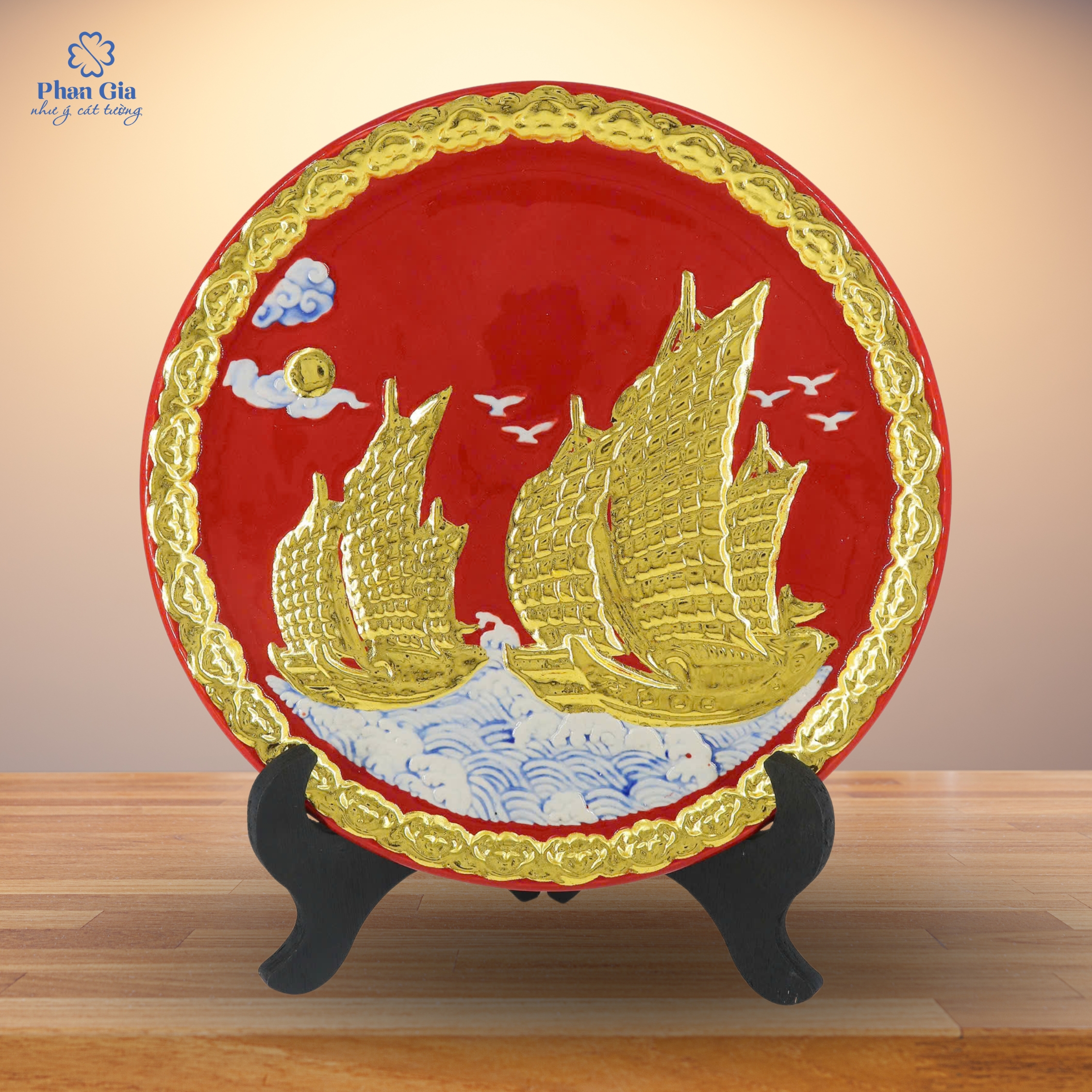 Liên hệ ngay Phan Gia để sở hữu đĩa gốm Thuận Buồm Xuôi Gió đắp nổi dát vàng – vật phẩm mang lại may mắn, tài lộc và thành công cho bạn và người thân.