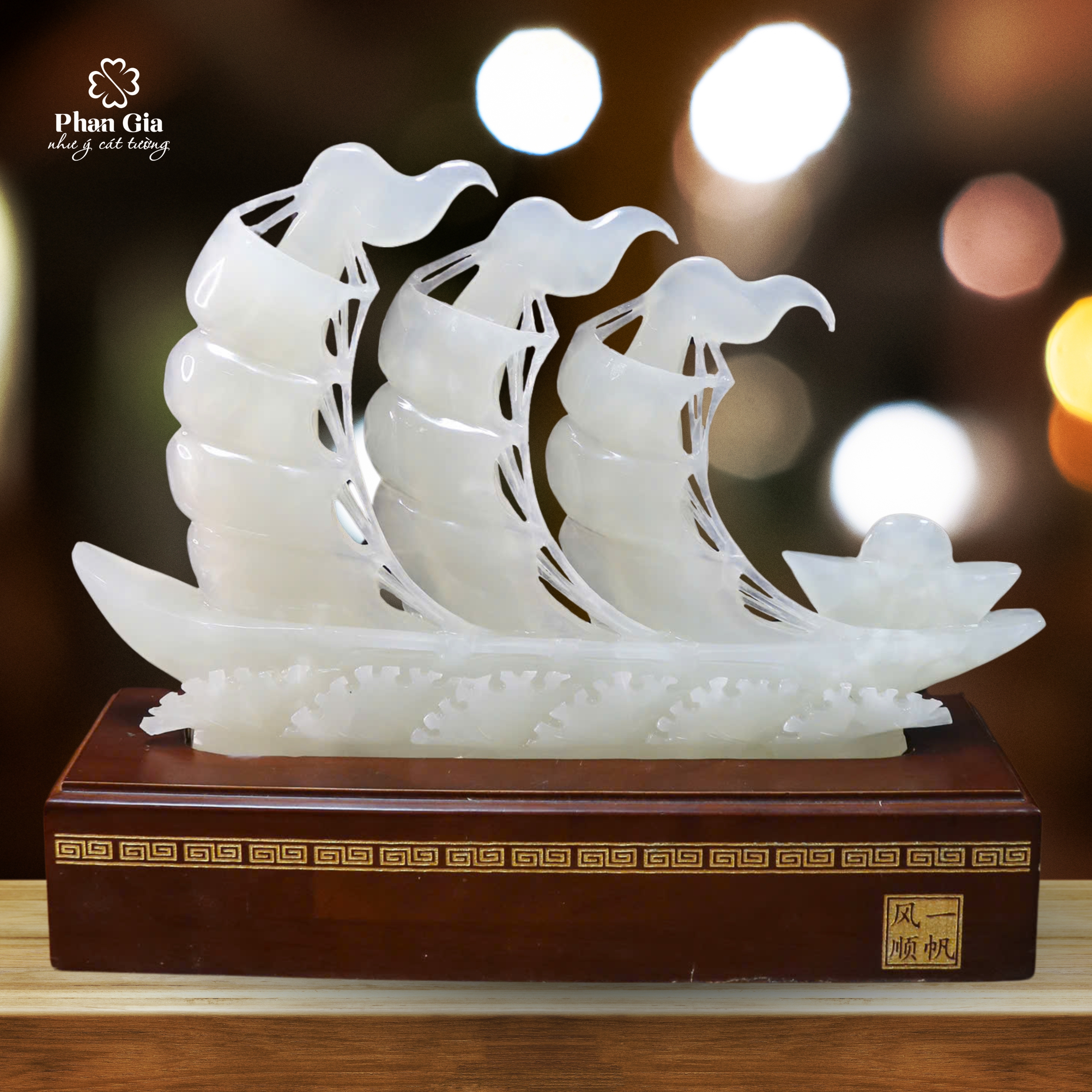 Thuận buồm xuôi gió được chế tác tỉ mỉ trên nền đá Onyx