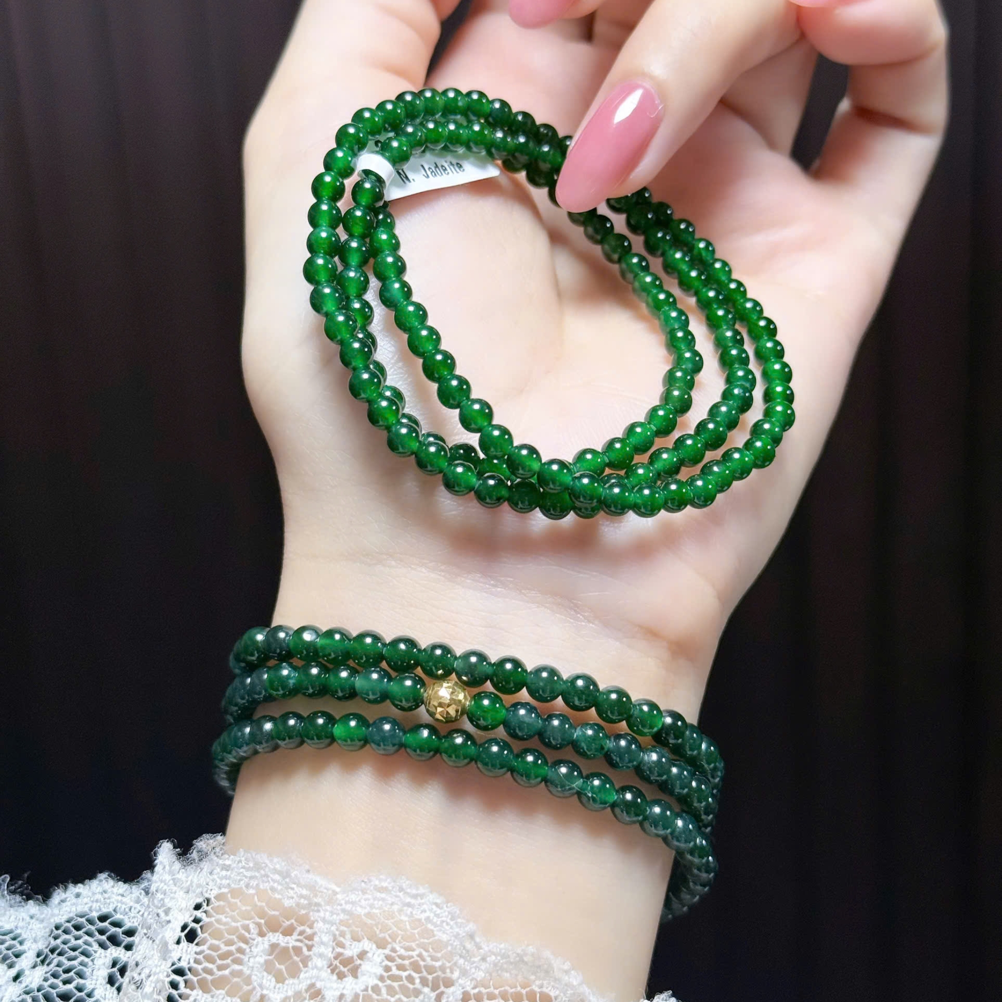 Hạt ngọc tròn đều, màu lục, nổi bật đẳng cấp