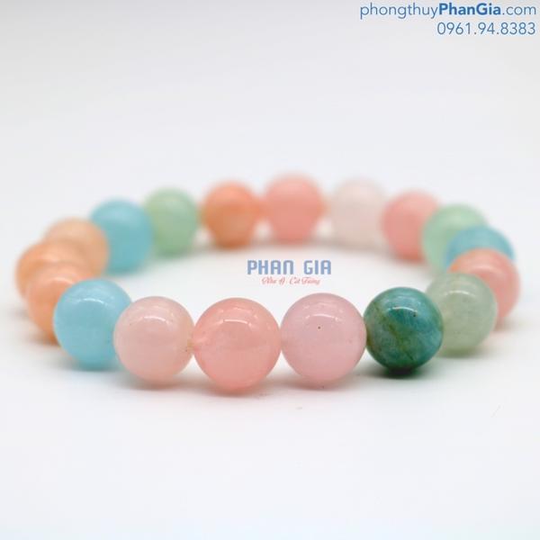 Vòng tay đá Beryl được thiết kế gồm nhiều hạt hình tròn, màu sắc xen kẽ nhau giúp người đeo luôn cảm thấy yêu đời, hạnh phúc. Sản phẩm làm từ đá tự nhiên nên những hạt đá không hoàn toàn giống nhau, mang lại sự may mắn cho người đeo. Gồm các hạt hình tròn, gắn kết với nhau chắc chắn mang lại cảm giác thoải mái, không quá rộng cũng không quá chật.