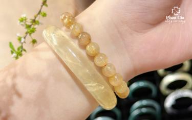Tại Nghệ An, nhiều khách hàng lựa chọn vòng khối thạch anh vàng như một món trang sức vừa đẹp vừa mang ý nghĩa phong thuỷ tốt lành.