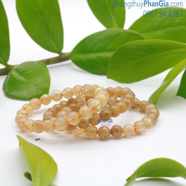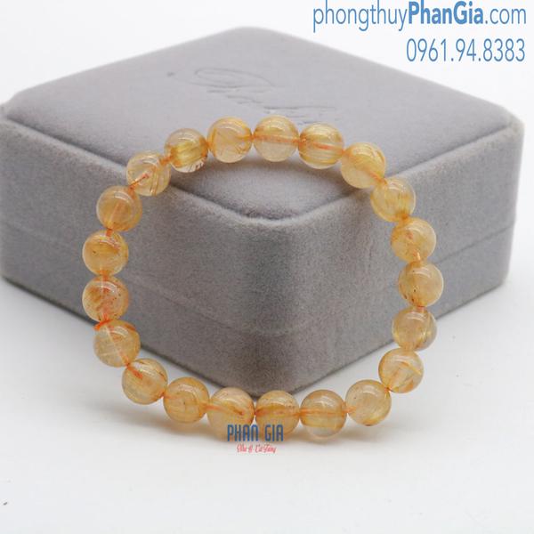 - Thạch Anh Tóc Vàng có màu vàng kim tự nhiên là viên đá của phú quý, tài lộc được giới doanh nhân ưa chuộng. Đeo Vòng Tay Thạch Anh Tóc Vàng thể hiện đẳng cấp phú quý của những doanh nhân thành đạt.
