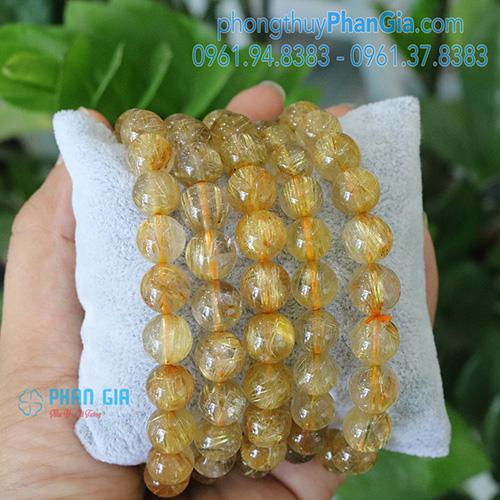 - Thạch Anh Tóc Vàng có màu vàng kim tự nhiên là viên đá của phú quý, tài lộc được giới doanh nhân ưa chuộng. Đeo Vòng Tay Thạch Anh Tóc Vàng thể hiện đẳng cấp phú quý của những doanh nhân thành đạt.